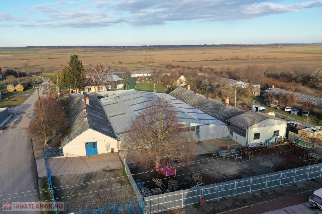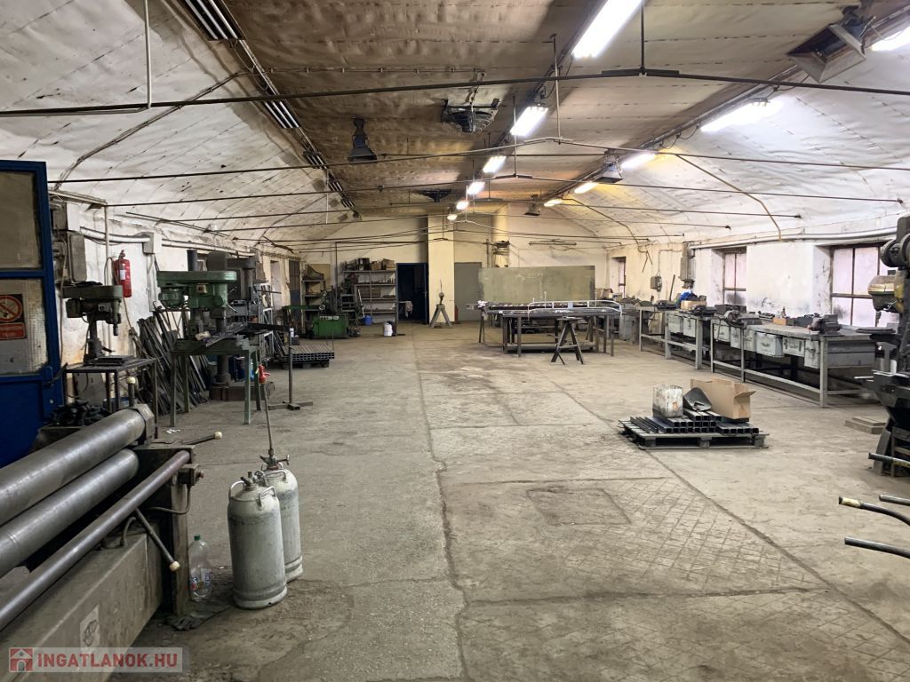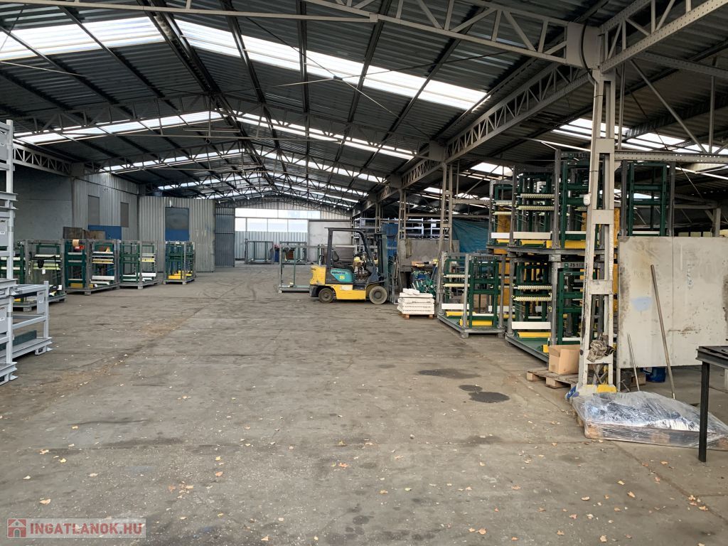 Gyártásra alkalmas, fűthető csarnok rész mérete 860m2, a belmagassága 3,2-3,6m közötti.
