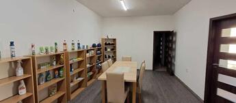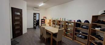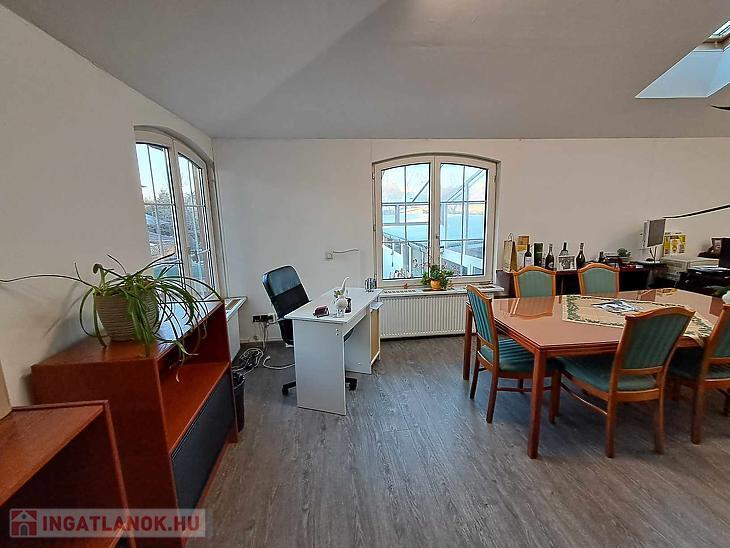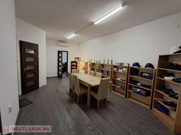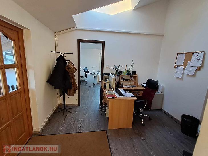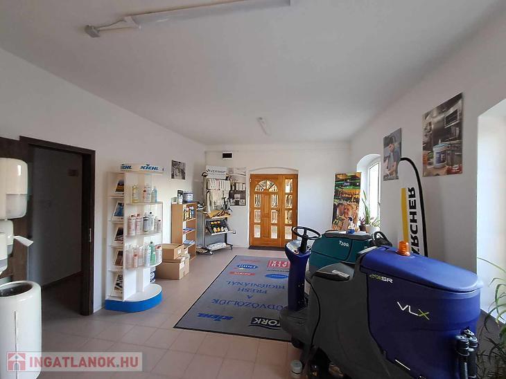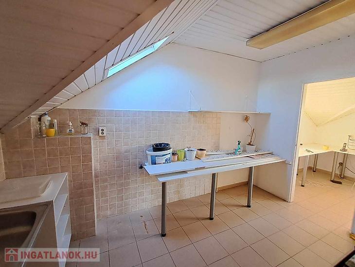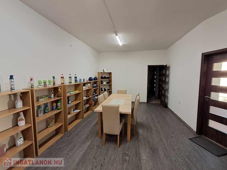 Az emeleten étkezős konyha, iroda, mellékhelyiség és üzlettér áll rendelkezésre.