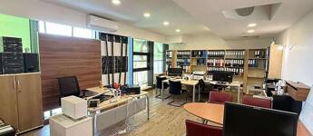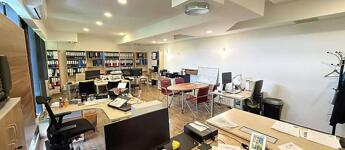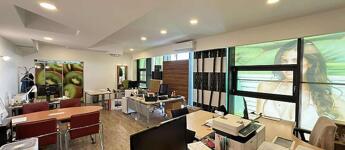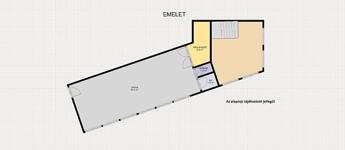 A magasföldszinten beérkezve egy üzlettér található konyhával és egy lépcsőház. Az emeleten, iroda fürdőszoba mellékhelyiséggel., A földszinten pedig 1 irodahelyiség 1 tároló és egy fürdőszoba.