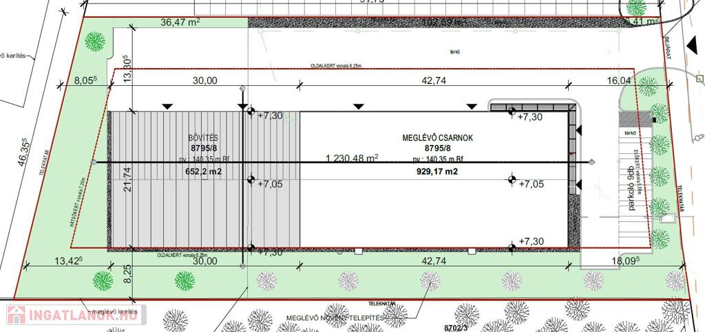 A Dot-Ing Ingatlaniroda ügyfelének megbízásából, megvételre kínálja a Tatabánya, Erdész úton található összesen 4.474m2 területű ipari ingatlanát, amelyen 1.000m2 zöldterület mellett, egy 1.730 nm nettó alapterületű raktárcsarnok és 2 szintes irodaház található.