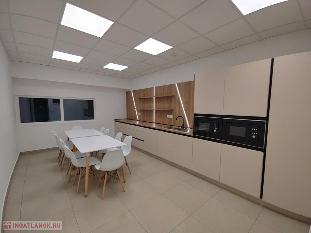 Az emeleti szint további 224 nm nettó alapterületű, amelynek számos szobájából a Gerecse hegység látható. Letisztult, modern formák, automatikus LED világítás, igazgatói iroda, tárgyaló, hatalmas konyha-étkező, mellékhelyiségek és további irodák, irattár stb.