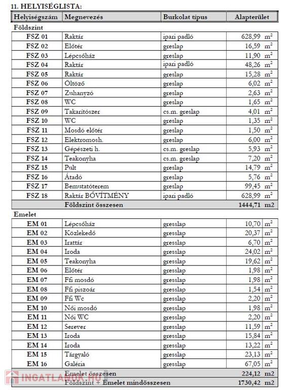 A mellékelt alaprajzon és helyiséglistán ezek pontos megnevezései és méretei láthatóak.