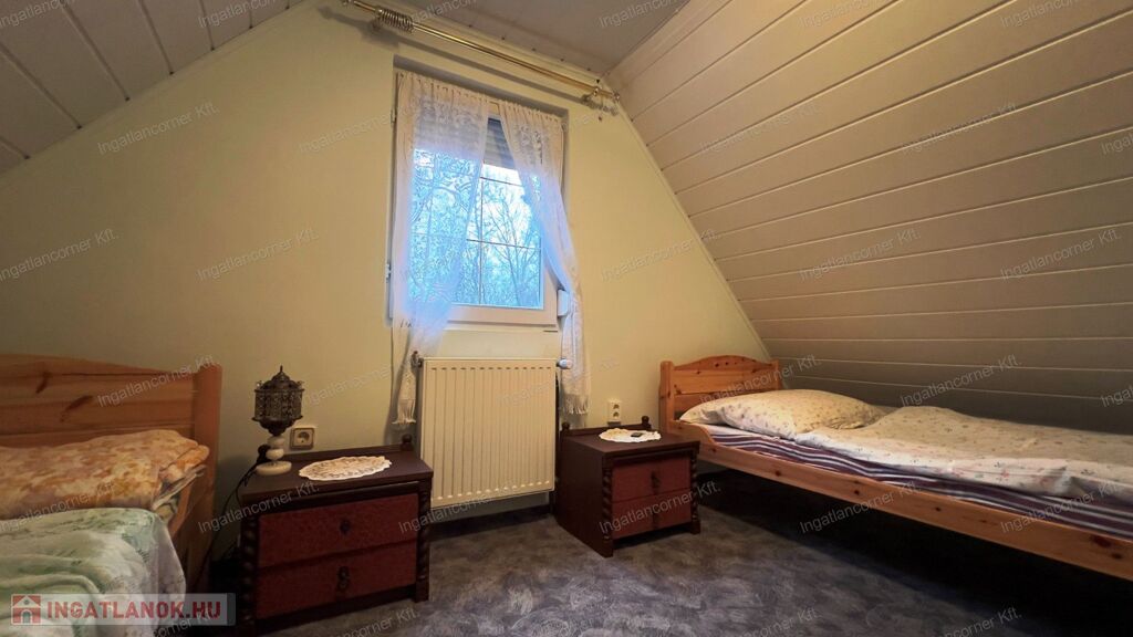 A telek szépen füvesített és ősfás, a környezet erdős, idilli táj. Sütögető, kerti zuhany kialakítva. Jó állapotú nyaralók és lakóházak szomszédságában. Aszfalt útról megközelíthető.