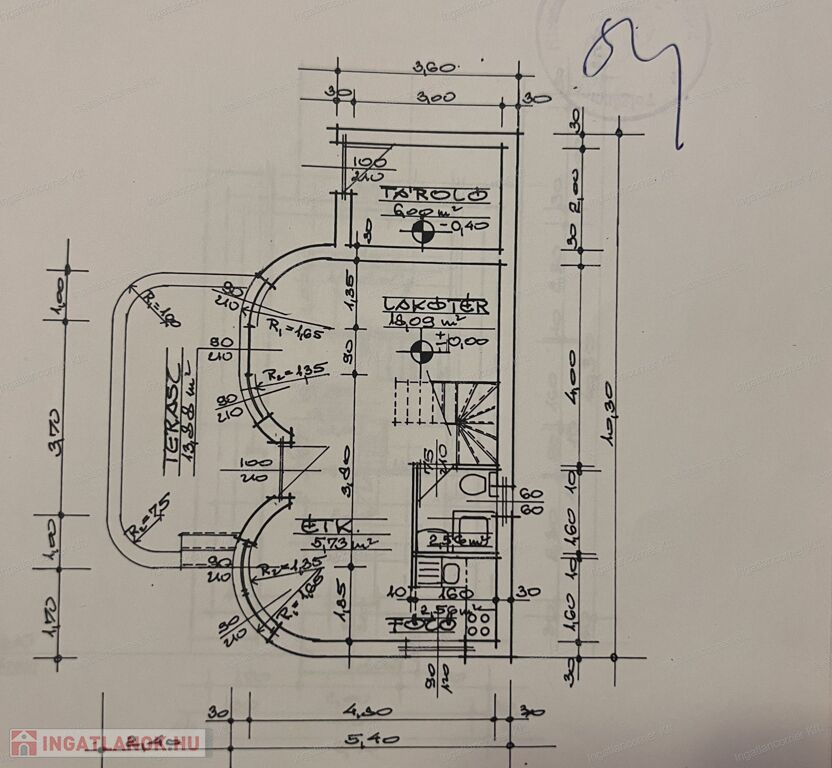 A földszinten található nappali-étkező-konyha, fürdőszoba - wc és jó méretű TERASZ. A tetőtérben 2 szoba, társalgó, wc került kiállításra.