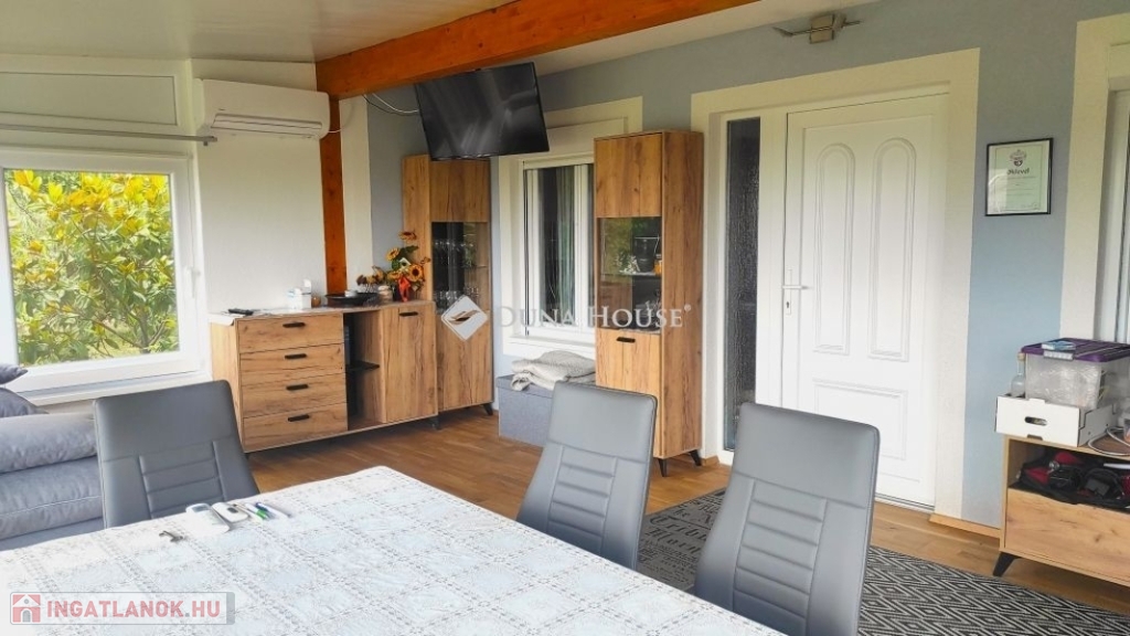 Mohácson a szőlőhegyen ház eladó!Dél-Baranyában Mohács közelében eladó ez a bájos kis nyaraló. Tulajdonosai amikor 20 évvel ezelőtt megvásárolták ezt a házat, hozzépítettek egy 24m2-es nappalit. Ez a helyiség adja meg az egész ház hangulatát. Nagy üveg tolóablakai télen-nyáron biztosítják a kitűnő fényviszonyokat. Innen nyílik egy újabb szoba, konyha, fürdő wc-vel. Ezek a helyiségek vannak a földszinten és ha felmegyünk a falépcsőn a tetőtérben még két szoba található. Mindkettőből ajtó nyílik a fenti teraszra. Az 5m2-es szép kilátásunk van az udvarra, és a távoli Dunára is. Az északi oldalon az utca felől beállhatunk az a fedett garázsba ami közvetlen a ház falához csatlakozik. A ház téglából épült, és szigetelt. A tető cserépfedéses, illetve a hozzáépítésnél szigetelt lemezfedéssel oldották meg. A nyílászárók műanyagok ,a burkolatok a földszinten kerámia, az emeleten pedig laminált padló. Fűtését egy kandalló biztosítja. Az ingatlan jól megközelíthető télen-nyáron is. Ha megtettszett vagy további kérdései lennének hívjon!