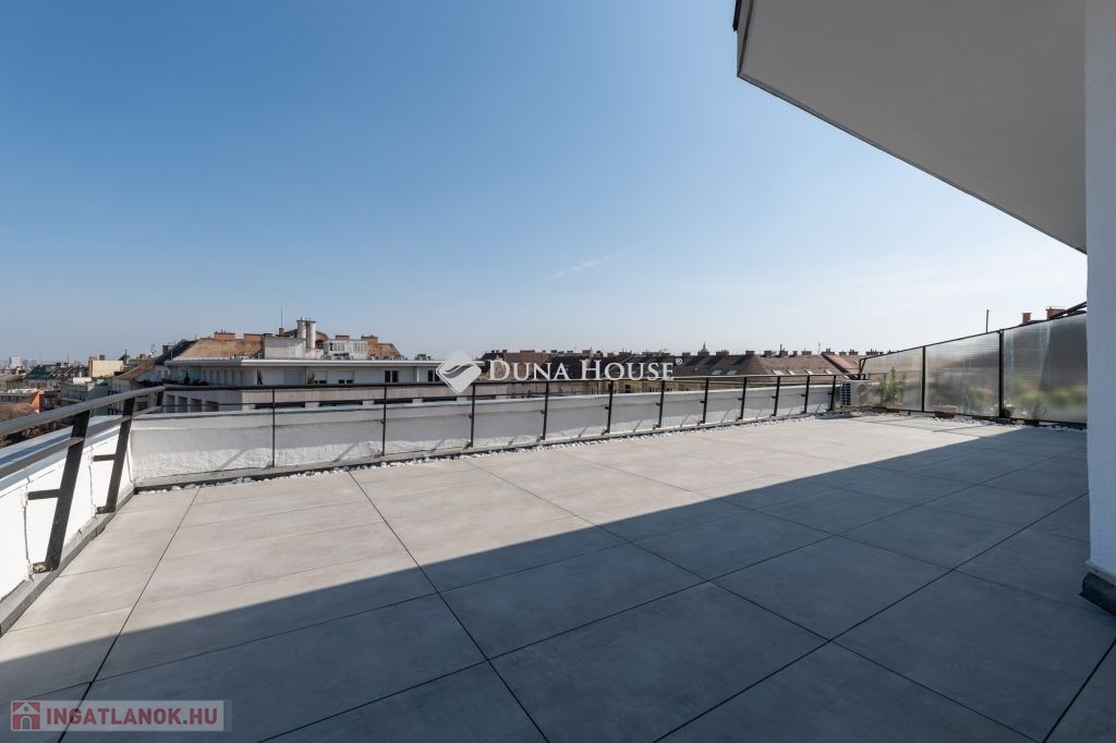 A Wow faktor: A lakás ékköve a hatalmas, tetőterasz, amely méretéből adódóan alkalmas kerti partik rendezésére, privát napozásra vagy akár egy kültéri lounge kialakítására is. Ez a méret ebben a magasságban és lokációban igazi ritkaság!