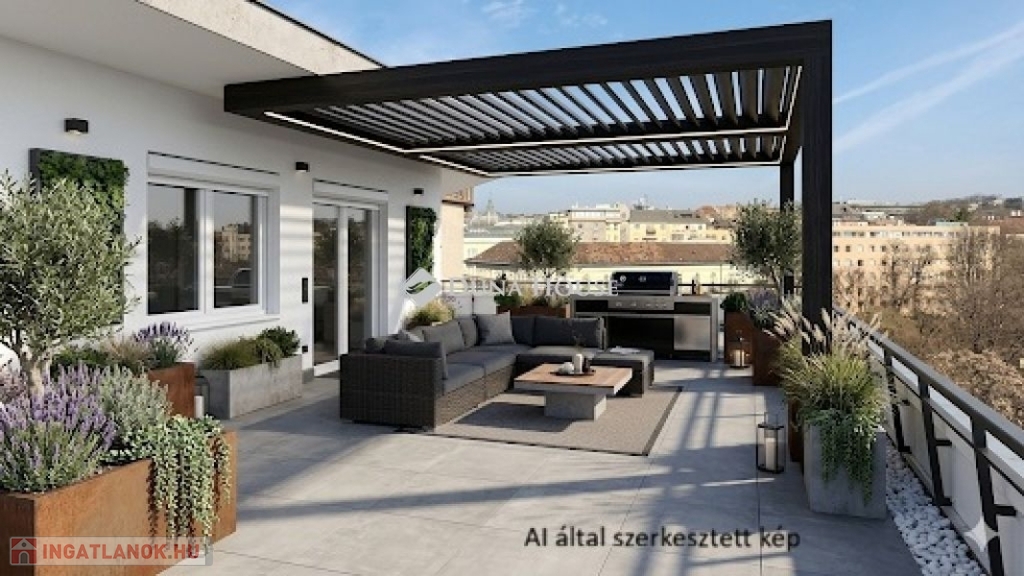 Alapterület: 50 nm lakótér + 70 nm saját tetőterasz
