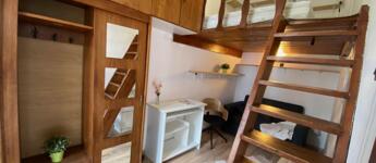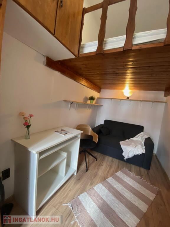 A 20 sqm studio apartment with a sleeping loft is available for rent on the 3rd floor in District VI of Budapest, located on Rózsa Street. The loft significantly increases the usable living space.