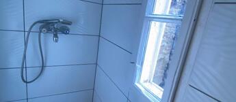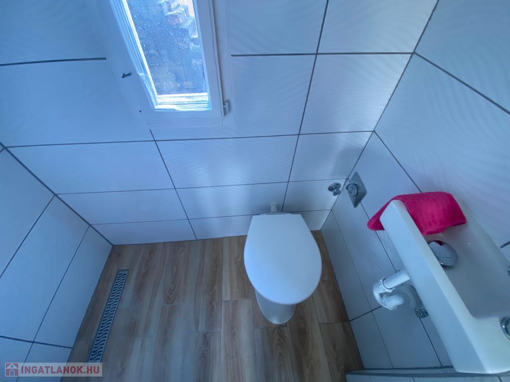 A fürdőszoba szintén felújított, zuhanyzóval, WC-vel és ablakkal felszerelt, így természetes szellőzéssel rendelkezik.