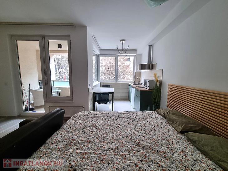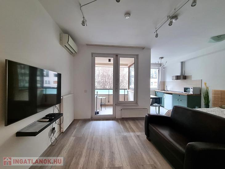 Kiadó egy újszerű, első emeleti, 32 nm-es garzonlakás a Cordia City Garden épületében, liftes társasházban, nagy erkélyes, bútorozott és gépesített, azonnal költözhető.