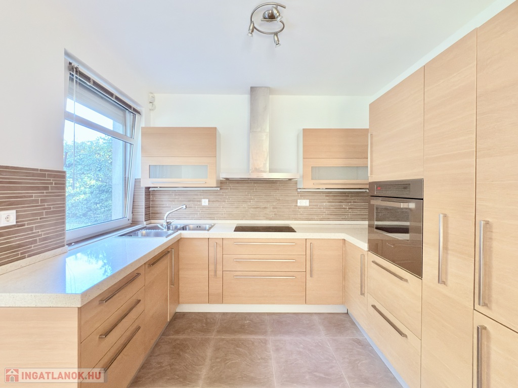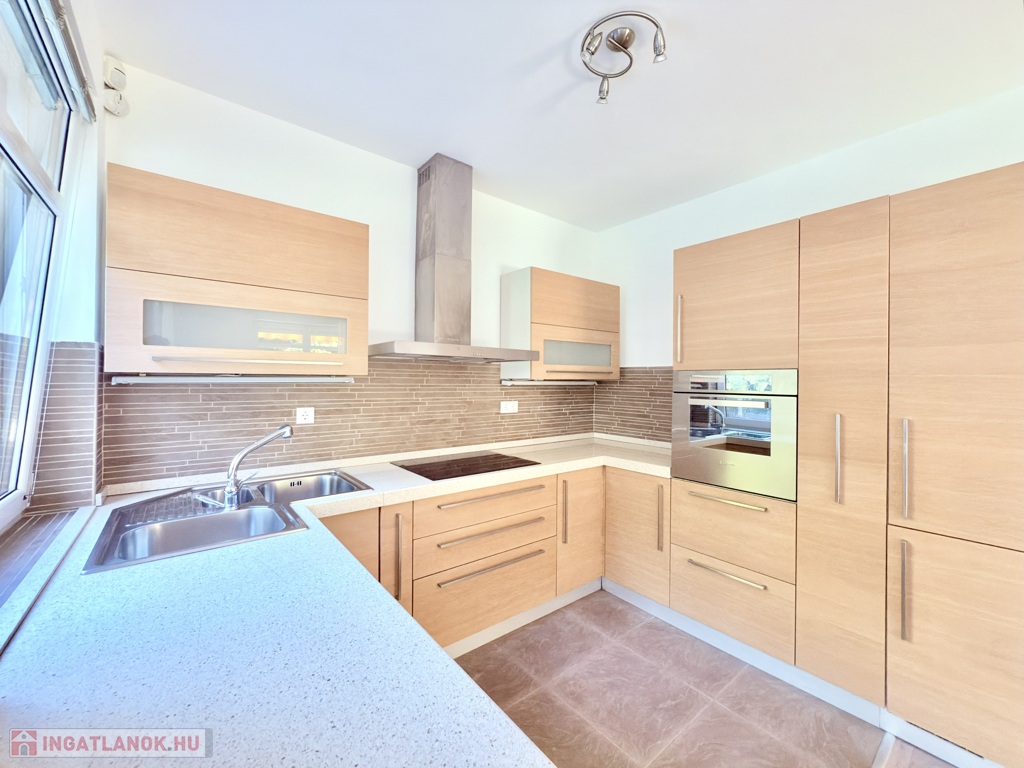 A lakás újszerű állapotban várja új bérlőjét, igényesen kialakított, minőségi beépített konyhával, amely gránit munkapulttal, sarokmosogatóval, új beépített hűtővel-fagyasztóval, FRANKE design páraelszívóval, mosogatógéppel, kerámia főzőlappal és elektromos sütővel felszerelt. A fűtésről saját cirkó kazán, a komfortérzetről pedig DAIKIN hűtő-fűtő klíma berendezés gondoskodik.