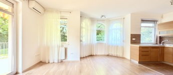 Budapest XI. kerületének egyik legkedveltebb, zöldövezeti részén, Sasad felső, csendes utcájában kiadó egy újszerű állapotú, kertkapcsolatos, nagy teraszos lakás egy mindössze négylakásos, modern megjelenésű társasházban.
