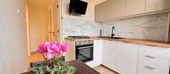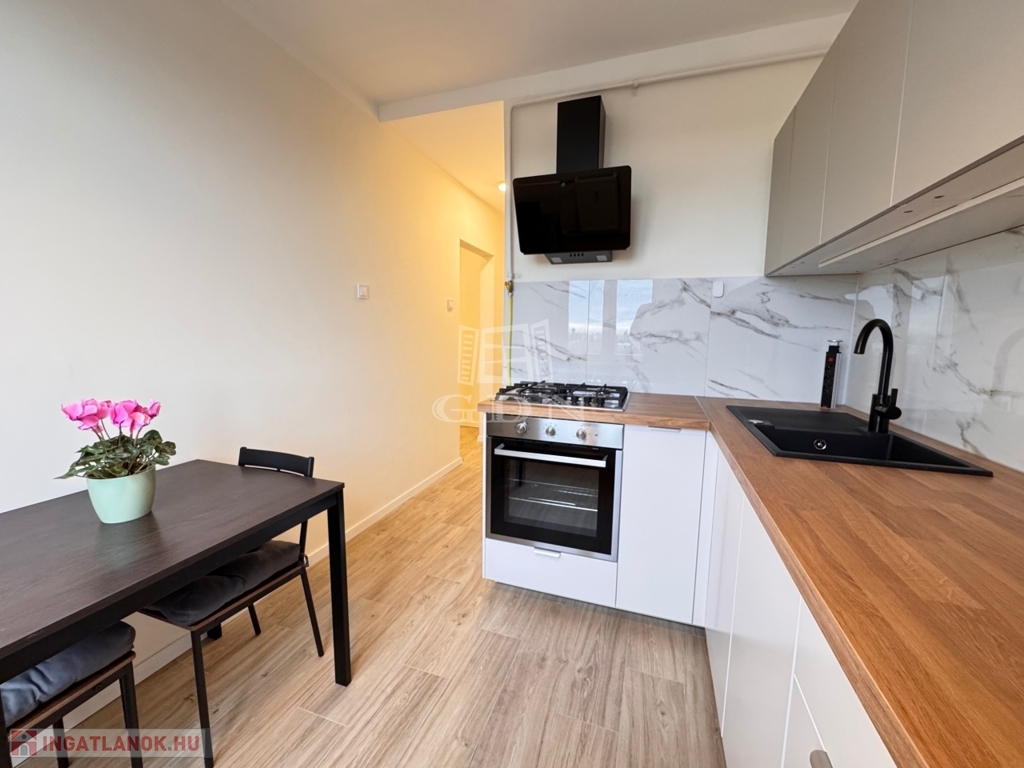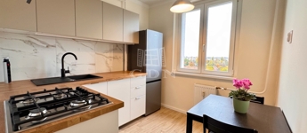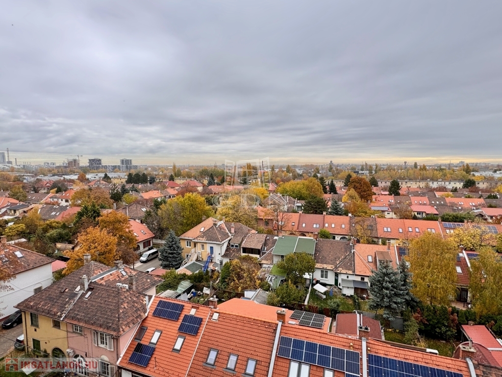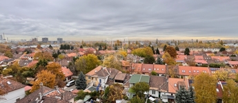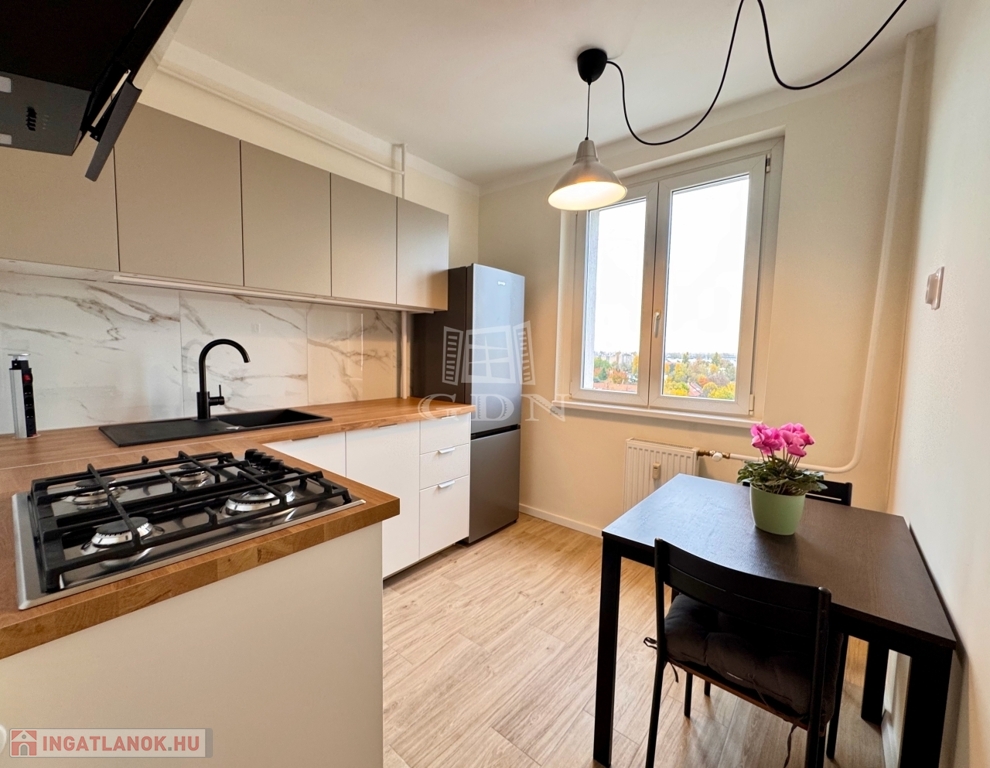 XI. kerület Albertfalván, a  Fegyvernek utcában, egy teljesen felújított, IKEA bútorokkal berendezett, gépesített konyhával, 2 szobás VII. emeleti, családi házakra néző, panorámás lakás, minimum 1 évre kiadó!