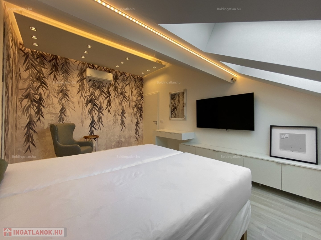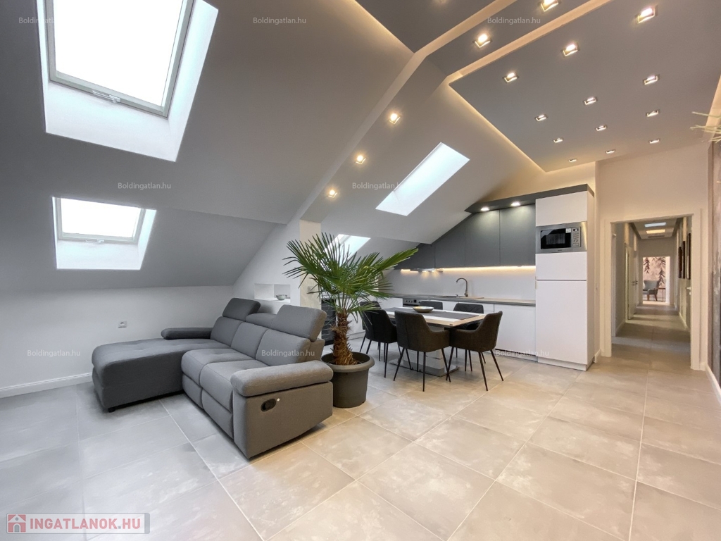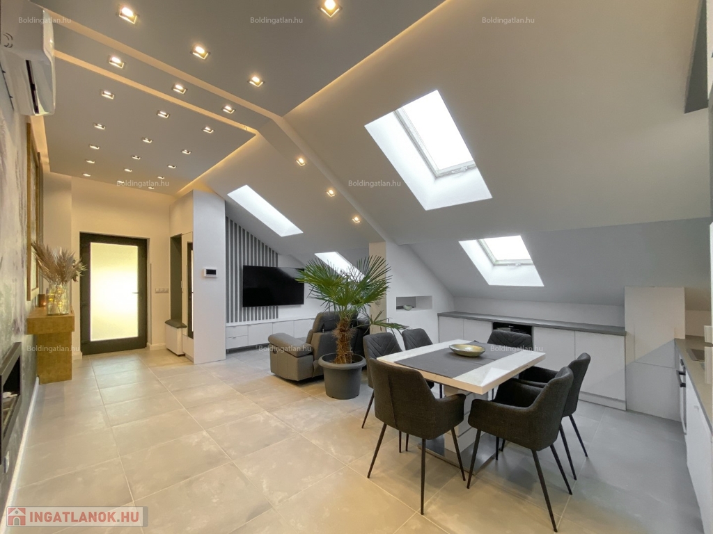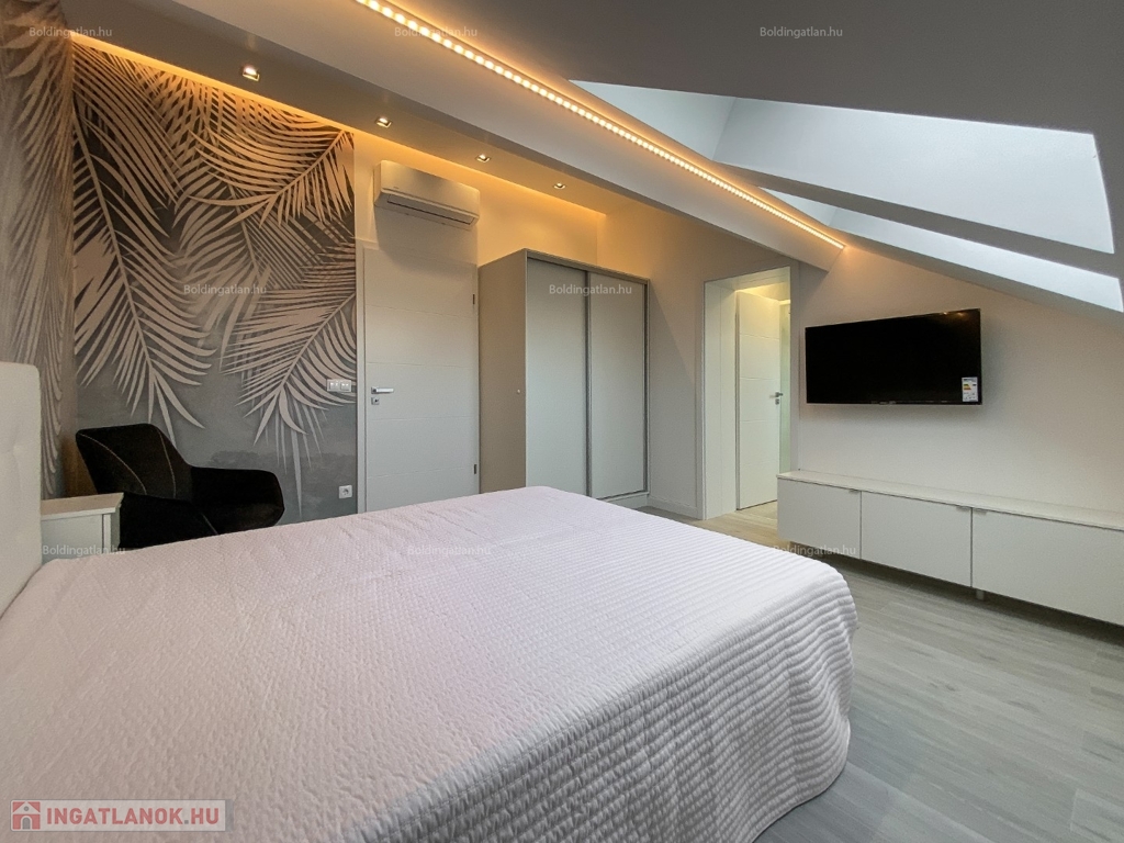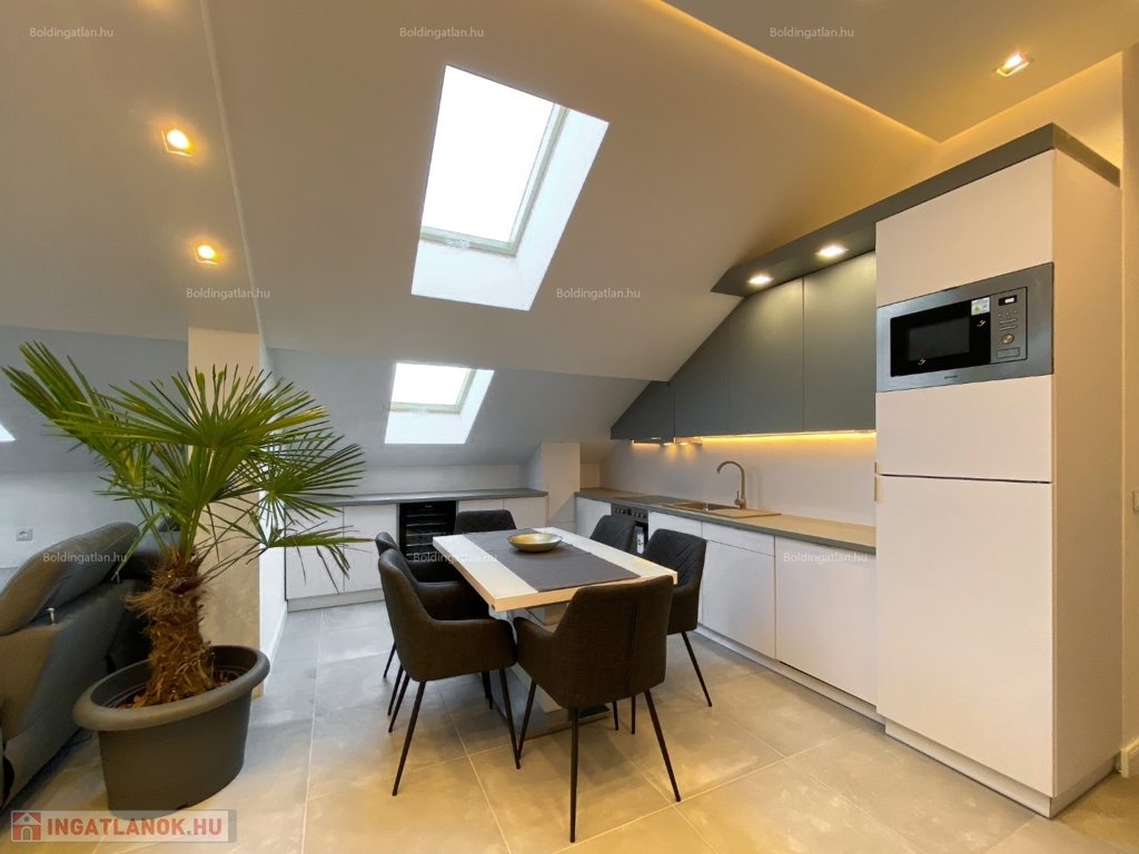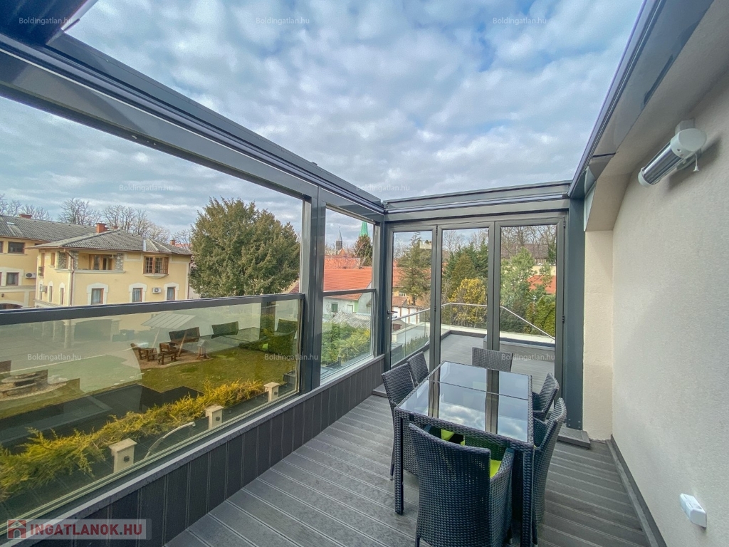 2026.04.01-től!!! Kaposváron a belvárosban, rendezett társasház 1. emeletén - a tetőtérben - exkluzívan kialakított 111,8 m2-es csendes lakás a képeken látható berendezéssel együtt hosszú távra kiadó. A lakásban előszoba, nappali - étkező - konyha beépített gépekkel és külön borhűtővel, motoros árnyékolóval felszerelt terasz, közlekedő, 3 szoba - hozzájuk tartozó 3 db fürdőszoba-wc-kézmosó, továbbá tároló helyiség kerültek kialakításra. A lakás fűtése gázközponti fűtéssel megoldott, a nappaliban és a szobákban légkondicionáló is felszerelésre került. A lakásban a kis állat tartást és a dohányzást nem engedélyezi a tulajdonos. Bérleti díj: 350.000.- Ft/hó + rezsi + 2 havi kaució