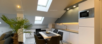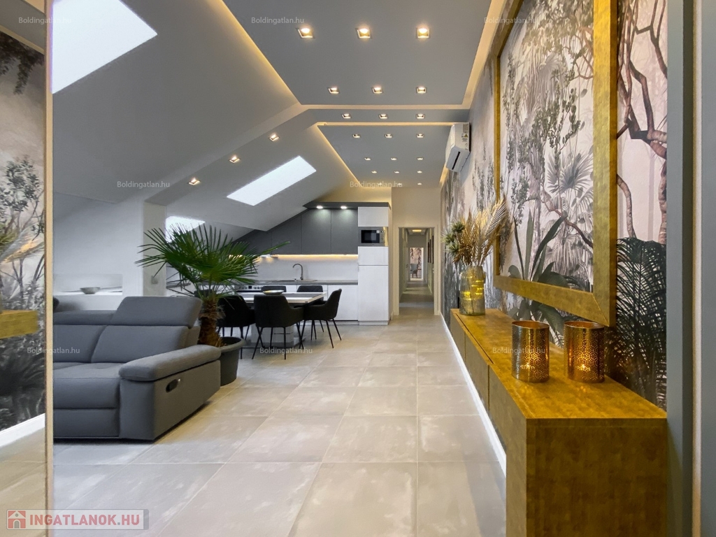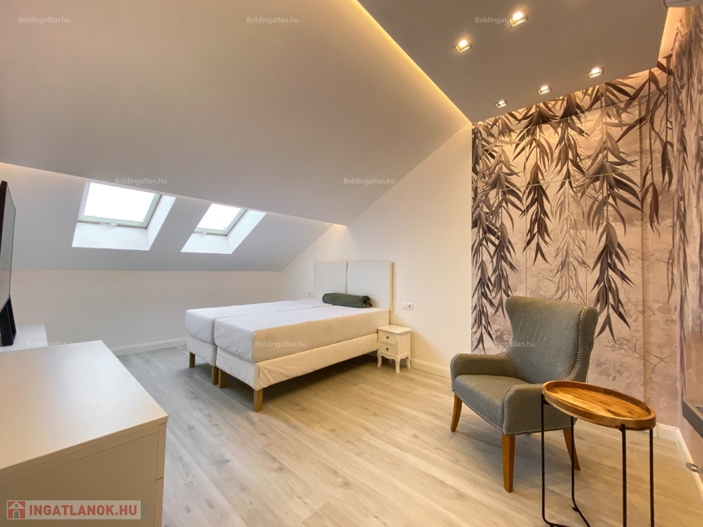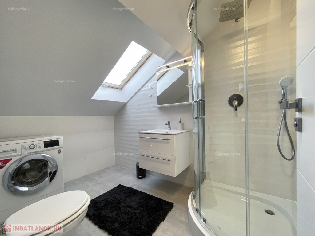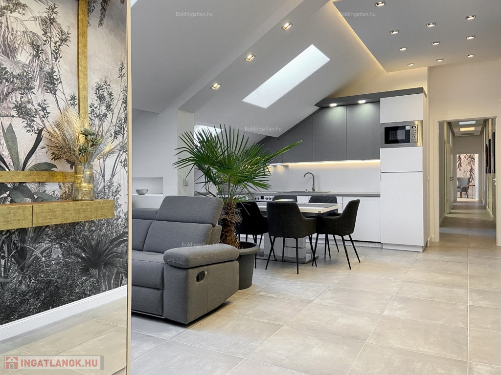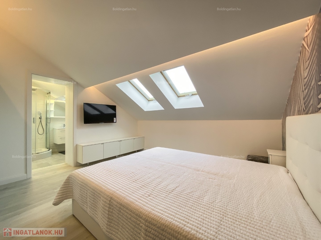 2026.04.01-től!!! Kaposváron a belvárosban, rendezett társasház 1. emeletén - a tetőtérben - exkluzívan kialakított 111,8 m2-es csendes lakás a képeken látható berendezéssel együtt hosszú távra kiadó. A lakásban előszoba, nappali - étkező - konyha beépített gépekkel és külön borhűtővel, motoros árnyékolóval felszerelt terasz, közlekedő, 3 szoba - hozzájuk tartozó 3 db fürdőszoba-wc-kézmosó, továbbá tároló helyiség kerültek kialakításra. A lakás fűtése gázközponti fűtéssel megoldott, a nappaliban és a szobákban légkondicionáló is felszerelésre került. A lakásban a kis állat tartást és a dohányzást nem engedélyezi a tulajdonos. Bérleti díj: 350.000.- Ft/hó + rezsi + 2 havi kaució