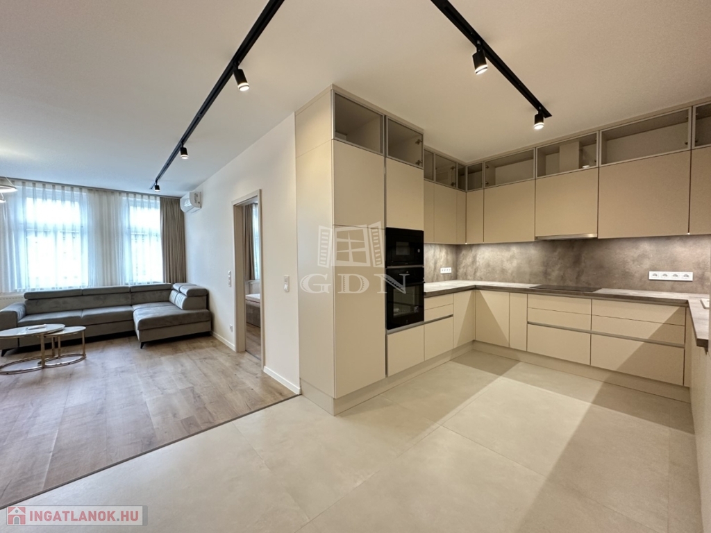BL-004548. Belvárosban, modern újszerű társasházban, felszerelt lakás, azonnali költözéssel, zárt udvari beállóval együtt, hosszútávra kiadó.