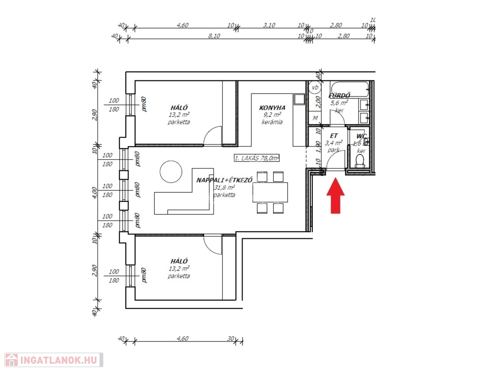 - hasznos alapterület: 78 nm