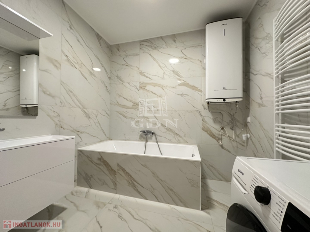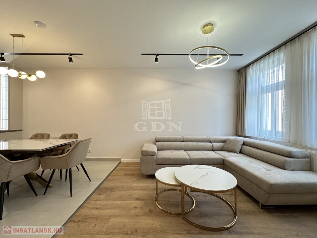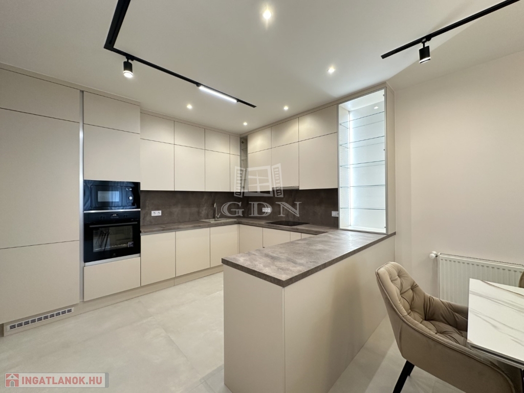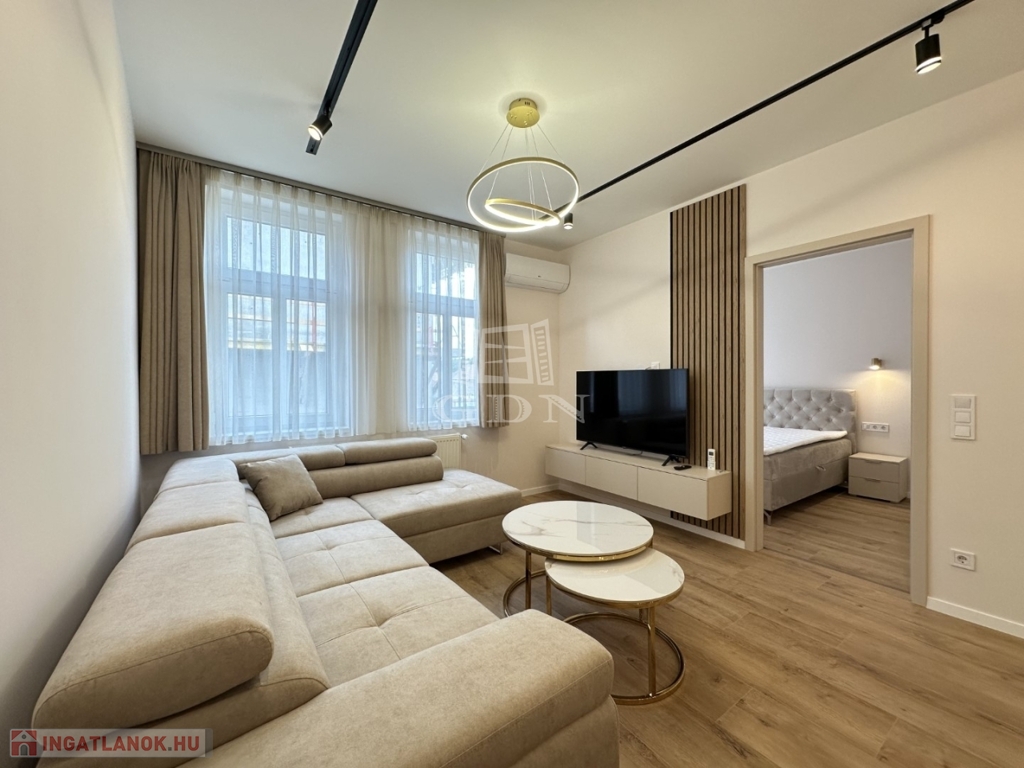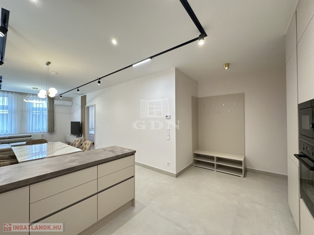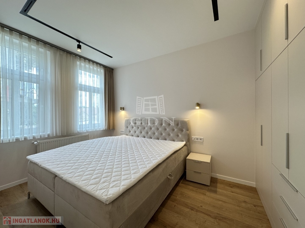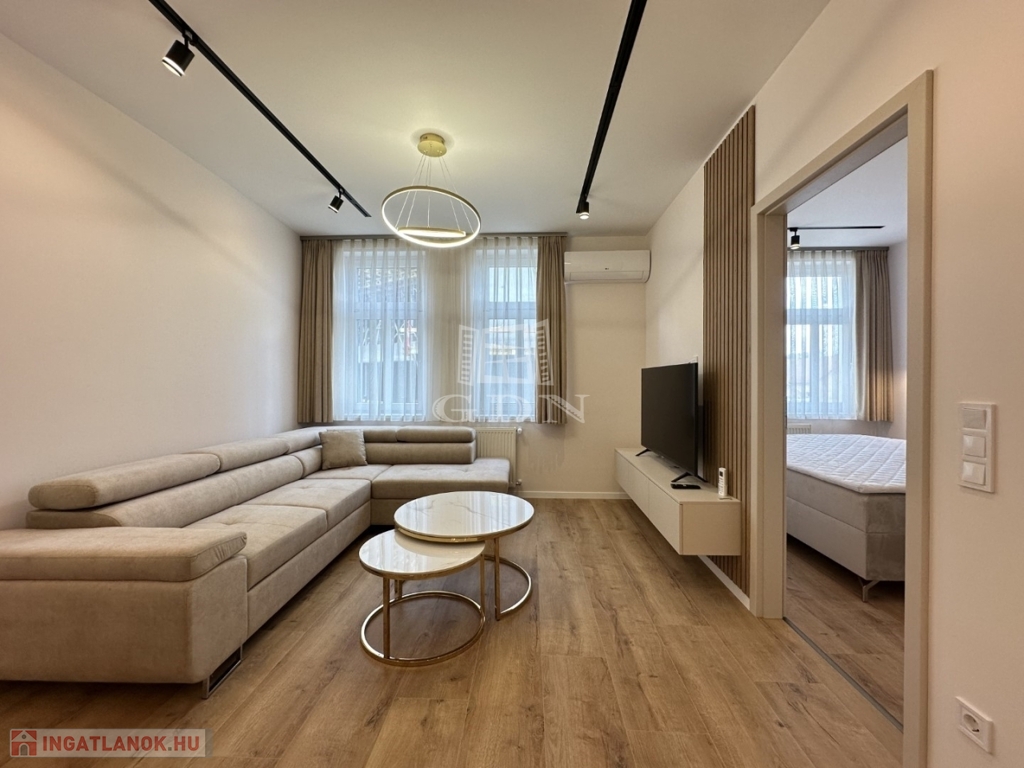 BL-004549. Belvárosban, modern újszerű társasházban, felszerelt lakás, azonnali költözéssel, zárt udvari beállóval együtt, hosszútávra kiadó.