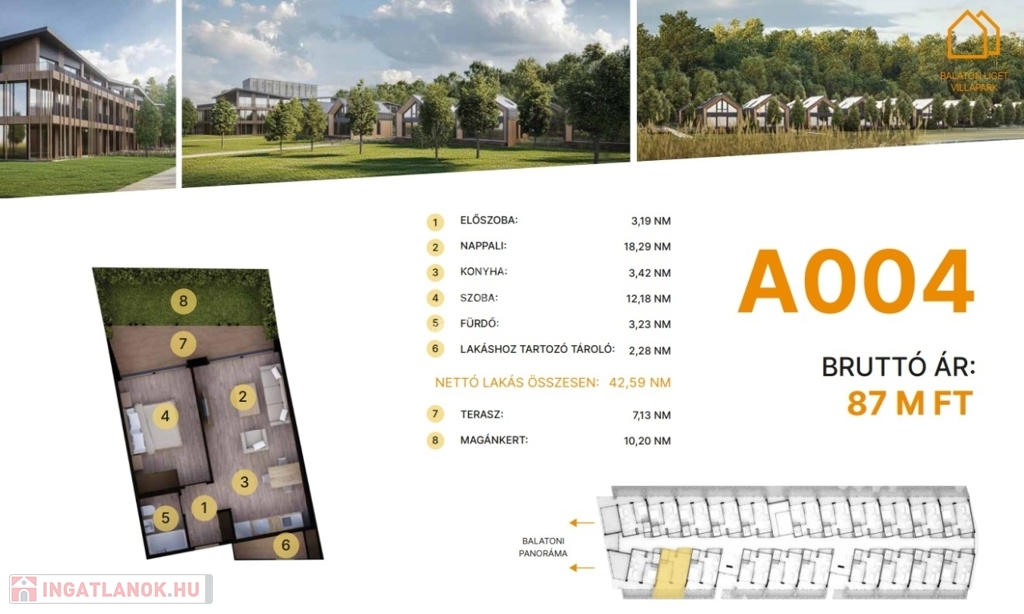 A földszinti lakásokhoz saját, privát kert tartozik.