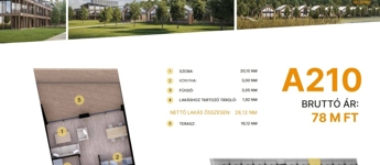 Az első emeleten további 21 lakás érhető el, 47–75 m² közötti méretben.