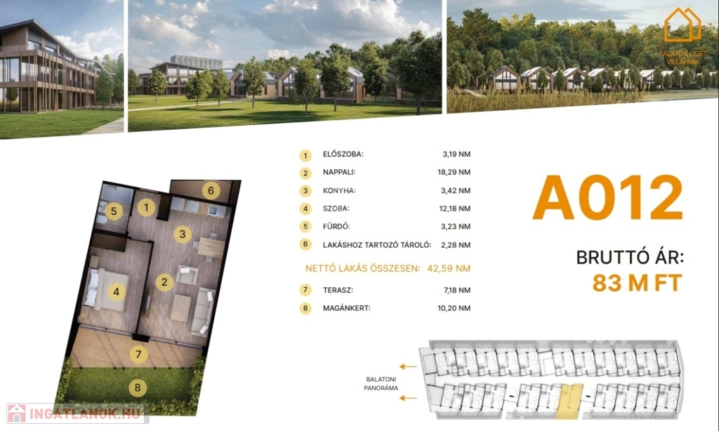A földszinti lakásokhoz saját, privát kert tartozik.