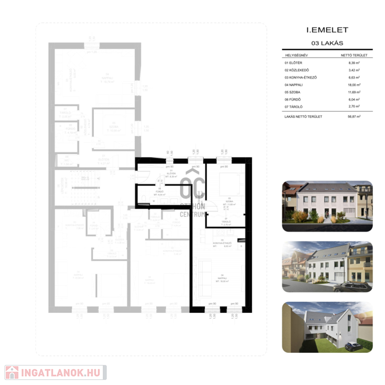 -nettó 50 m2, bruttó 75 m2 lakótérrel
