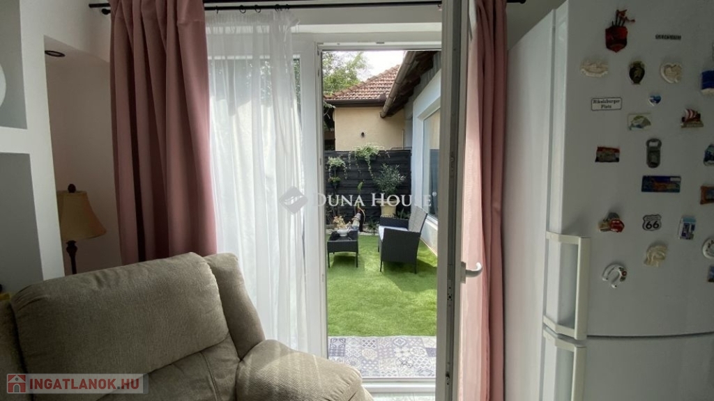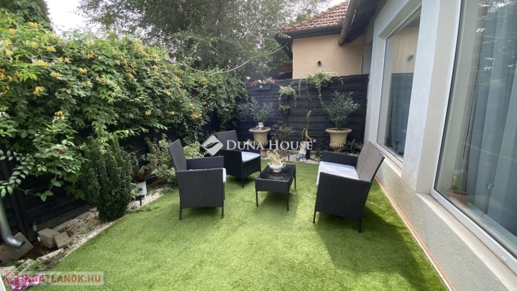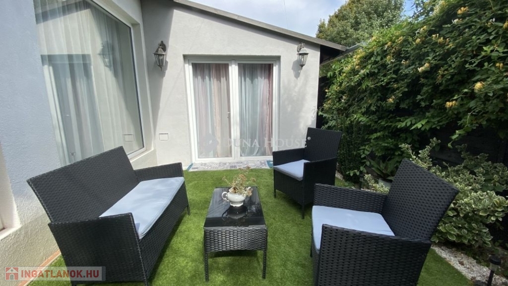 A telek végében saját tágas kert biztosít lehetőséget pihenésre, az udvaron pedig a házhoz tartozó fáskamra és nyári konyha ad plusz tárolási lehetőséget.