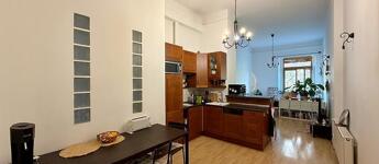 A lakás központi része a 32 m²-es amerikai konyhás nappali, amely tágas, napfényes és otthonos hangulatú. Az ablakok a zöldövezetre és a Vár aljára néznek, így a lakás különösen nyugodt környezetet biztosít.