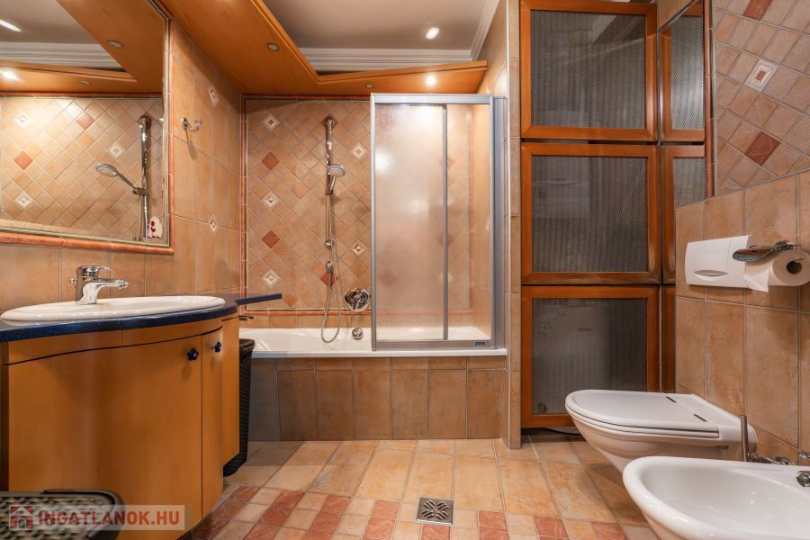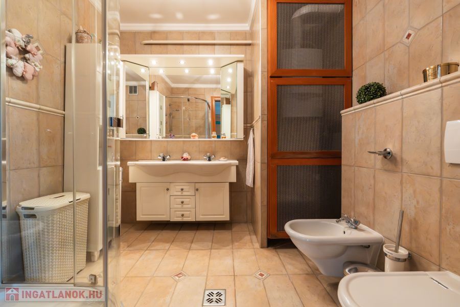 Nettó alapterület: 210 m² (102m² + 108 m²), két szintes elrendezés, több szinten elkülönített funkcionális zónák.