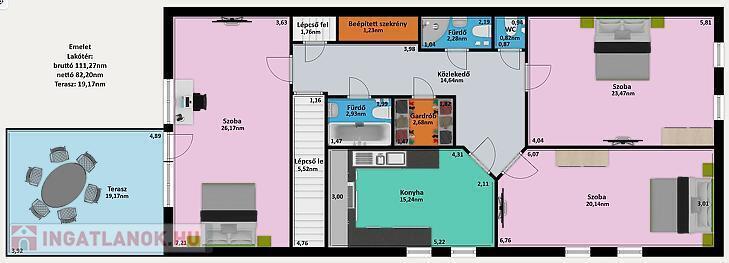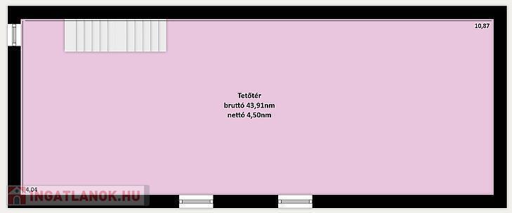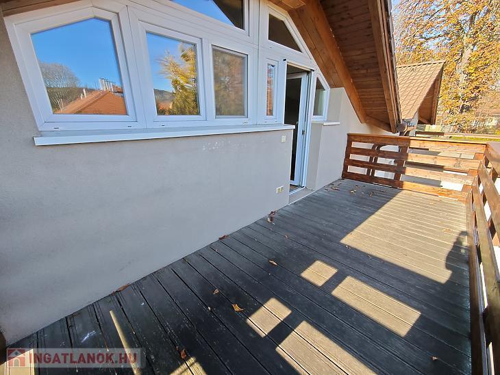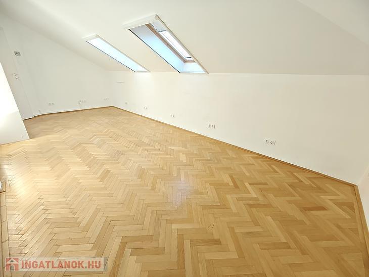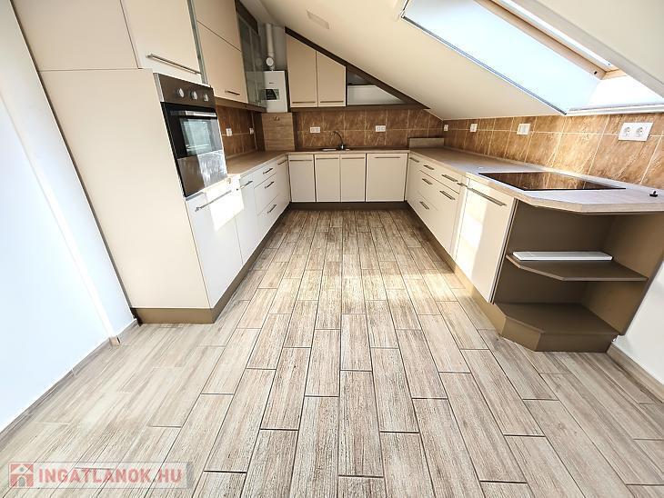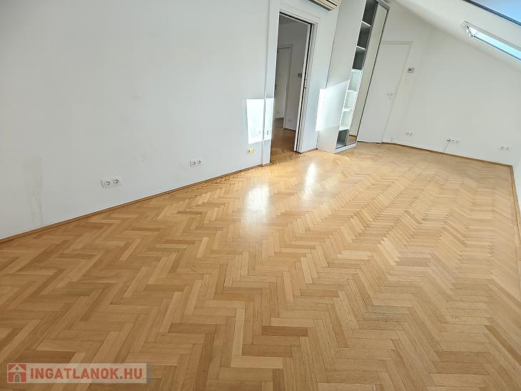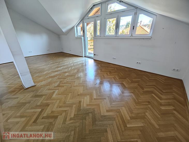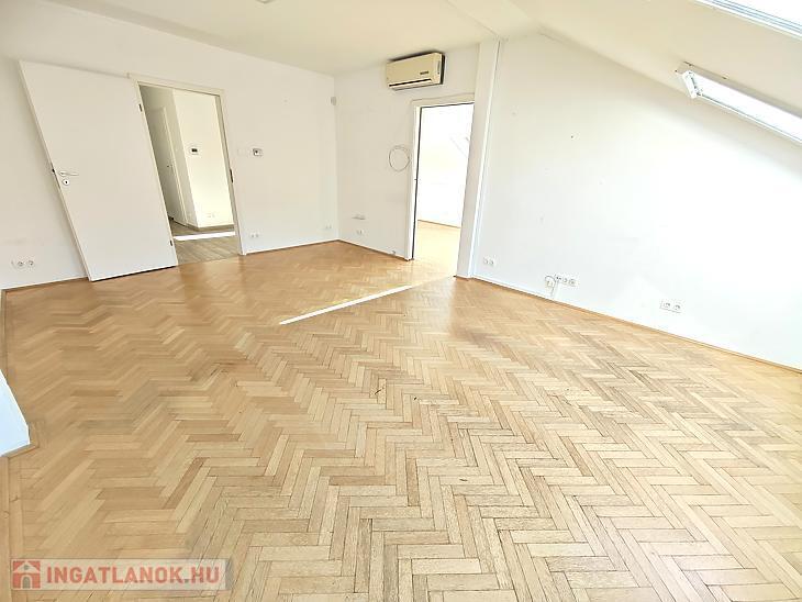 - Tetőtérben bruttó 106nm-es (nettó 77nm) 3 szobás, étkezőkonyhás lakás, melyhez tartozik egy 19nm-es terasz kilátással az Apáthy-sziklára