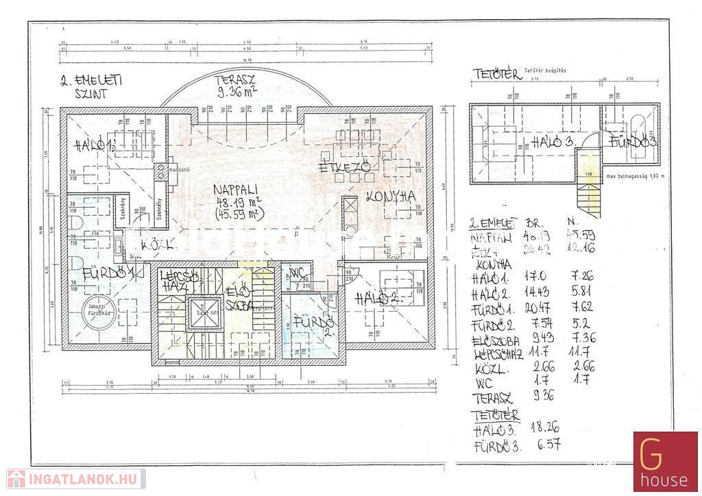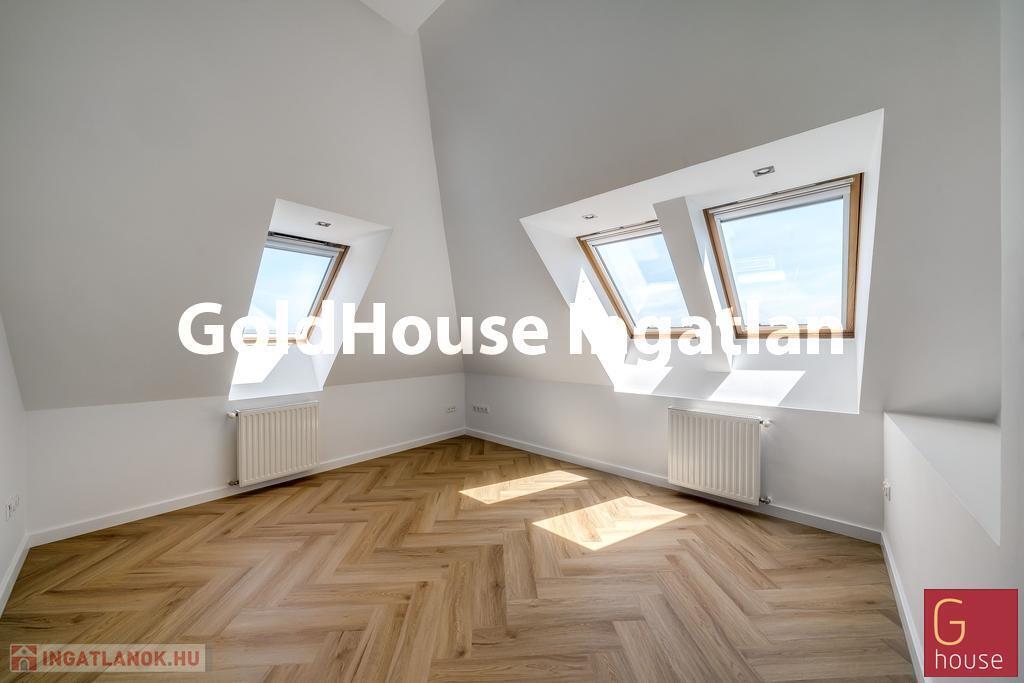 Az alapterületen felül a lakáshoz tartozik egy 27 m²-es, alacsonyabb belmagasságú tetőtér, amelyben egy további szoba és fürdőszoba került kialakításra. Ideális vendégszobának, gyerekszobának vagy dolgozószobának.