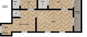 1. EMELET: 95,6 m2 – 3 szoba – 2 fürdő – TERASZ: 12 m2