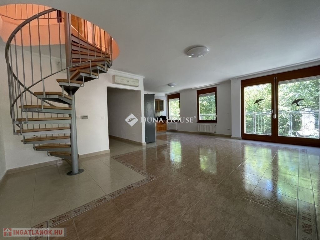 HŰVÖSVÖLGYI ÚTRA MERŐLEGES CSENDES UTCÁBAN A KÍNAI ISKOLA KÖZELÉBEN 2004 ÉPÍTÉSŰ LIFTES HÁZBAN MÁSODIK EMELETI HÁROM SZOBÁS LAKÁS ELADÓ!Für weitere Informationen stehe ich Ihnen gern zur Verfügung.A közlekedés remek, több iskola óvoda, bölcsőde van a környéken A közelben a természet, sétautak, játszóterek. Kávézók és éttermek.Az épület három szintes, a pince szinten teremgarázs beállók és tárolók vannak.A lift a garázs szintig közlekedik.A belső kétszintes kialakítású lakásba lépve , az előszobából nyílik a hálószoba, fürdő, a tágas nappali, konyha részből elhúzható teljes üveg ajtón át léphetünk ki a 14nm2 teraszra.A felső szintre csigalépcsőn át juthatunk, ahol további egy szoba, fürdő található illetve kiléphetünk az 52 nm2-es teraszra, amely igen kellemes hely, tavasztól-őszig.A lakás fűtéséről gáz cirkó készülék gondoskodik. Mindkét szinten légkondicionáló is van.A lakás napfényes, borult időben is világos.Az ingatlanhoz tartozó beálló és tároló /3nm2/,együttes értéke 10 millió forint.További kérdés esetén várom hívását!
