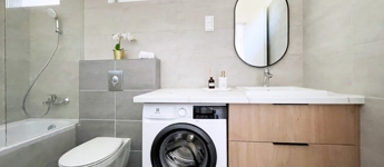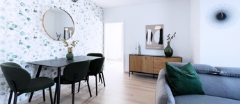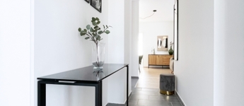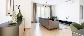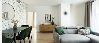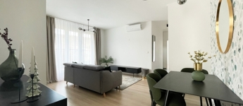 A modern megjelenés és a kiváló minőségű anyagok összhangja teszi ezt a lakást különösen vonzóvá.