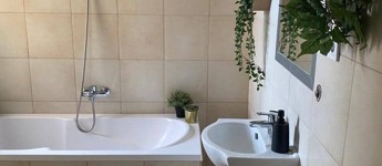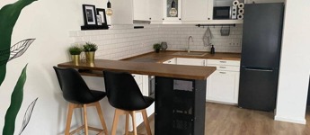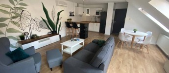 A lakás teljesen gépesített: mosógép, mosogatógép, hűtő, valamint két klíma (lent és fent).