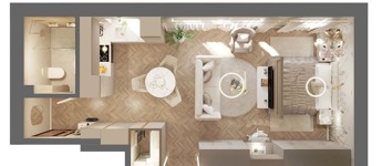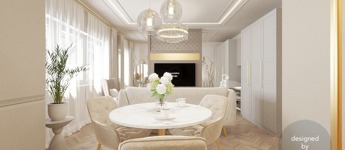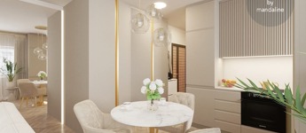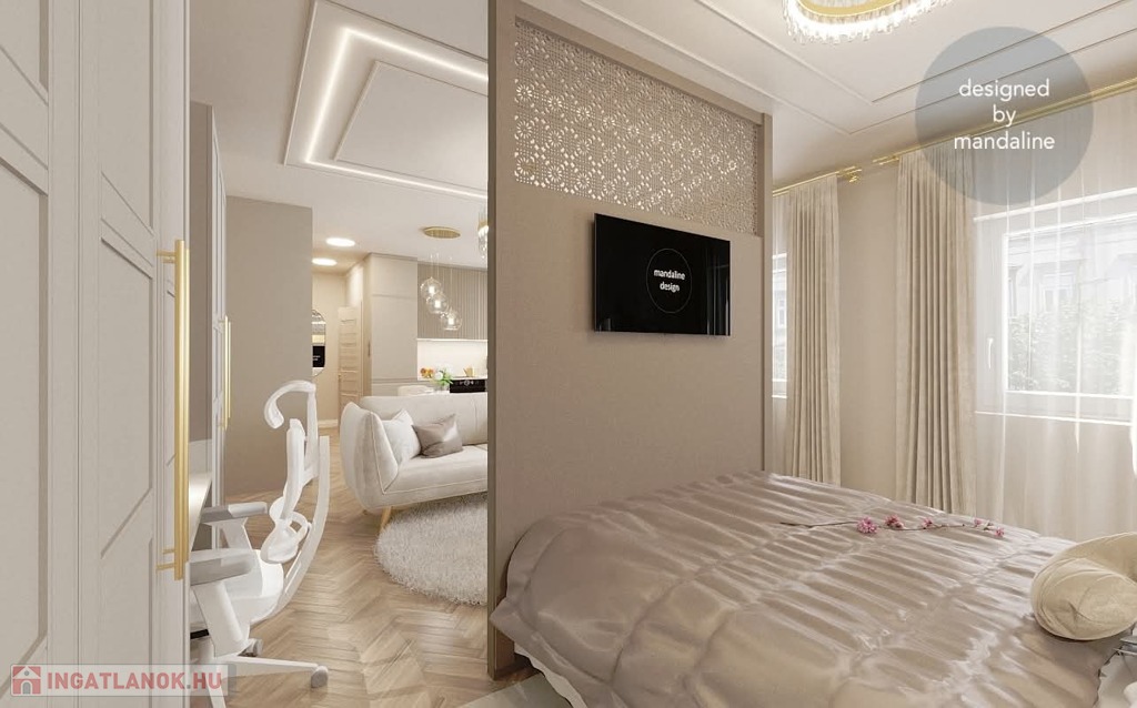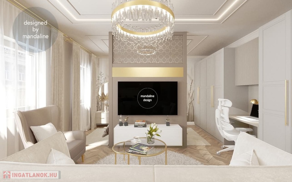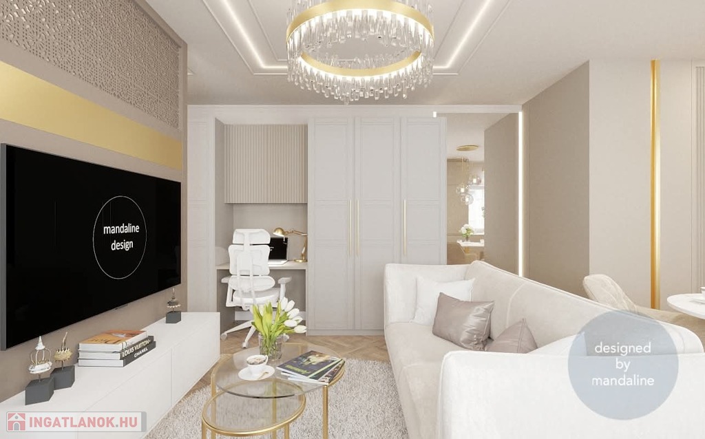 A lakás hangulata az első pillanattól magával ragad: a letisztult színek, az egységes burkolatok, az ízlésesen kiválasztott csillárok és világítótestek, a finoman megválasztott függönyök, a beépített és szabadon álló bútorok együttese valódi otthonérzetet teremt.