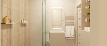 Igényesen kialakított fürdőszoba, modern szaniterekkel