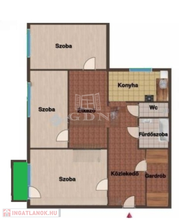 Mindhárom szobája külön bejáratú, az ablakok redőnnyel felszereltek.