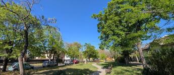 A környék csendes, kiváló tömegközlekedési lehetőségek vannak a közelben, a Rákospalota-Újpest vasútállomás pár perc sétára található, és a 12-es és 14-es villamos is a közelben áll meg.