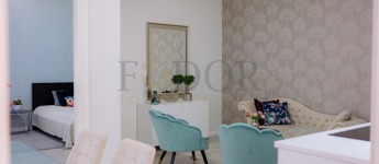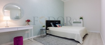 A lakásba belépve egy tágas előszoba fogad, innen balra a nappali-konyha-étkező található, amelyet nagy ablakok tesznek világossá. Innen nyílik az egyik hálószoba. Jobbra fordulva két további külön nyíló hálószoba és két teljes értékű fürdőszoba kapott helyet – az egyik káddal, a másik zuhanyzóval felszerelt. A szobák mérete ideális, a térszervezés tudatos és jól használható. Mivel a lakás a folyosó végén található, a bejárat előtti terület teraszként is remekül funkcionál.