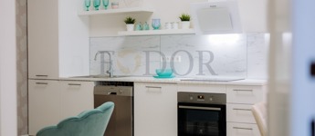 • Modern, gépesített konyhabútor (sütő, főzőlap, mosogatógép, páraelszívó)