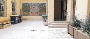 A lakás bejárata előtt, a társasház egyedi tervezése okán, egy közel 200m2-es terasz található, mely bár nem külön használatban van, mérete okán az innen nyíló három lakás számára mind elegendő helyet kínál kiülőhely, pihenőhelynek, illetve pl. növények számára is, jelenleg is eképpen hasznosított. Szintén bőséges hely áll rendelkezése a területen kerékpár tárolására, kikötésére is.