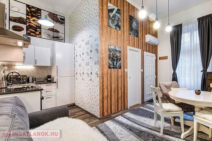 Budapest VI. kerületében, a Teréz körút egyik legkeresettebb részén, közvetlenül az Oktogon szomszédságában eladó egy 65 m²-es, teljes körűen felújított, 4. emeleti lakás. Az ingatlant a modern igények szerint két külön bejáratú, önálló garzonná alakították, így kiváló választás befektetőknek vagy akár többfunkciós saját használatra is. Mindkét lakás világos, igényesen felújított, külön konyhával és fürdőszobával rendelkezik. A társasház rendezett, lifttel felszerelt, a lakások pedig azonnal költözhetők.