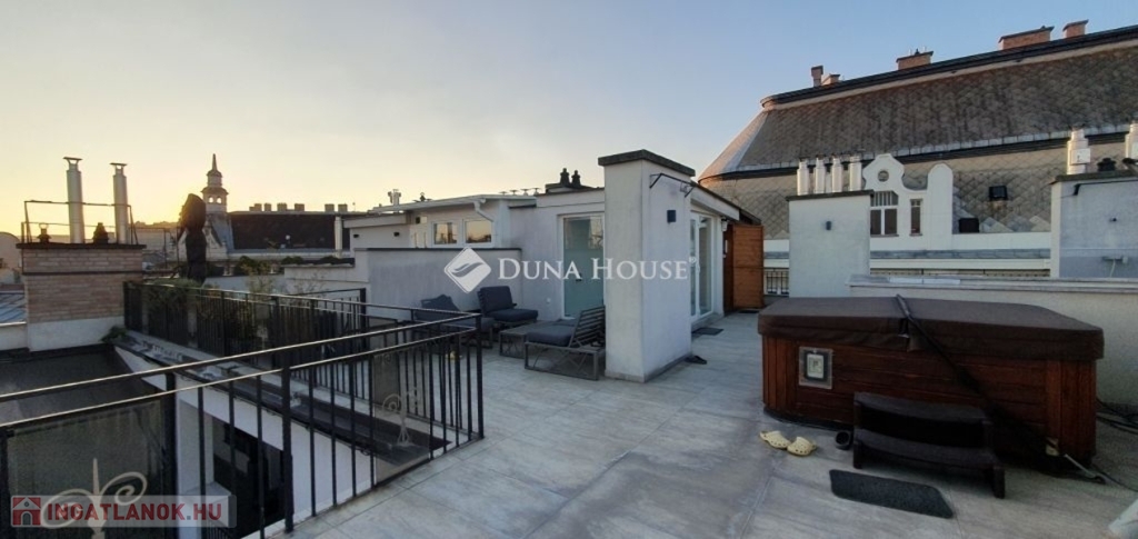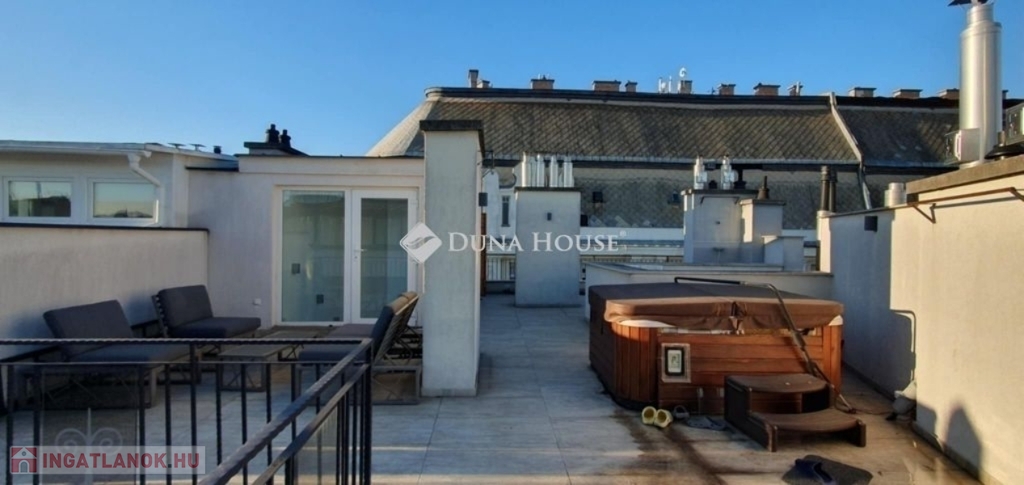 Eladó penthouse lakás Budapest szívében, a 6. kerületben lenyűgöző panorámával a Bazilikára - English belowKivételes lehetőség a város egyik legkeresettebb részén: eladó egy 89 m²-es, napfényes penthouse lakás a Terézváros elegáns utcái felett, az 5. emeleten, közvetlen rálátással a Bazilikára.A lakás elrendezése modern és kifinomult: impozáns nappali + 3 külön nyíló szoba, 2 kényelmes fürdőszoba, valamint egy intimebb terasz, amely az egyik hálószobához kapcsolódik. A nyugati tájolás egész napos természetes fényt és kellemes hangulatot ad, míg a padlófűtés és a 4 beépített klíma a tökéletes komfortot biztosítja.A nappaliból egy elegáns belső lépcső vezet fel az ingatlan valódi ékkövéhez: a 70 m²-es, saját használatú tetőteraszhoz, ahol szauna és jacuzzi teremtenek exkluzív, privát wellness-élményt mindezt a város fölött, hamisítatlan pesti hangulatban.Mindenek felettA penthouse tágas teraszáról páratlan látvány nyílik: a pesti bérházak karakteres, történelmi tetősora szinte díszletként terül el a szemünk előtt, s kicsit távolabb tekintve a Bazilika méltóságteljes kupolája rajzolódik ki. Ez a panoráma a város különleges, időtlen hangulatát idézi, egyszerre modern és romantikus és minden napszakban új arcát mutatja.Kinek ajánlom?Ez az ingatlan azoknak szól, akik nem csupán egy lakást keresnek, hanem egy olyan életteret, amely valóban kiemelkedik a városi kínálatból. Azoknak, akik értékelik a minőséget, a letisztult eleganciát, a privát luxust és a belváros felett megélhető csendes pillanatokat.A 70 m²-es tetőterasz, a szauna, a jacuzzi, a lenyűgöző panoráma és a magas szintű műszaki felszereltség olyan életstílust kínál, amelyet csak kevesen választanak de akik választják, pontosan tudják, miért.További információért és megtekintésért kérem, keressen bizalommal! Penthouse apartment for sale in the heart of Budapest, District 6 with a stunning panorama of the BasilicaA unique opportunity in one of the citys most sought-after areas: a 89 m² sunny penthouse apartment is for sale above the elegant streets of Terézváros, on the 5th floor, with a direct view of the Basilica.The layout of the apartment is modern and refined: an impressive living room + 3 separate bedrooms, 2 comfortable bathrooms, and an intimate terrace connected to one of the bedrooms. The western orientation ensures natural light and a pleasant atmosphere throughout the day, while underfloor heating and 4 built-in air-conditioning units provide full comfort.From the living room, an elegant internal staircase leads to the most exceptional highlight of the property: the 70 m² private rooftop terrace, where a sauna and jacuzzi create an exclusive, private wellness experience above the city.Above AllFrom the spacious terrace of the penthouse, a unique view opens up: the characteristic, historic rooftops of Pests residential buildings unfold in front of us like a theatrical backdrop, and looking slightly further, the dignified dome of the Basilica rises into view. This panorama evokes the citys special, timeless atmosphere simultaneously modern and romantic and reveals a new face at every moment of the day.Who do I recommend it to?This listing is for those who are not simply looking for a new home, but for a living space that truly stands out from the rest. For those who appreciate quality, refined elegance, private luxury, and the peaceful moments that can be experienced above the bustle of the city center.The exceptional features of the property the 70 m² rooftop terrace, the sauna, the jacuzzi, the breathtaking panorama, and the high-level technical equipment offer a lifestyle chosen only by a few, and those who choose it know exactly why.For more information and to schedule a viewing, please feel free to contact me!