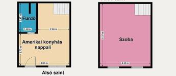 Eladó egy különleges kialakítású, belső kétszintes, utcára nyíló, 2 szobás lakás Budapest VII. kerületében, az Izabella utcában.