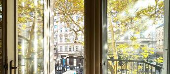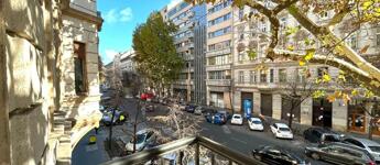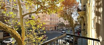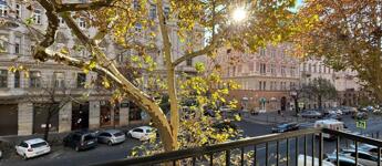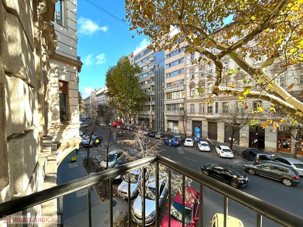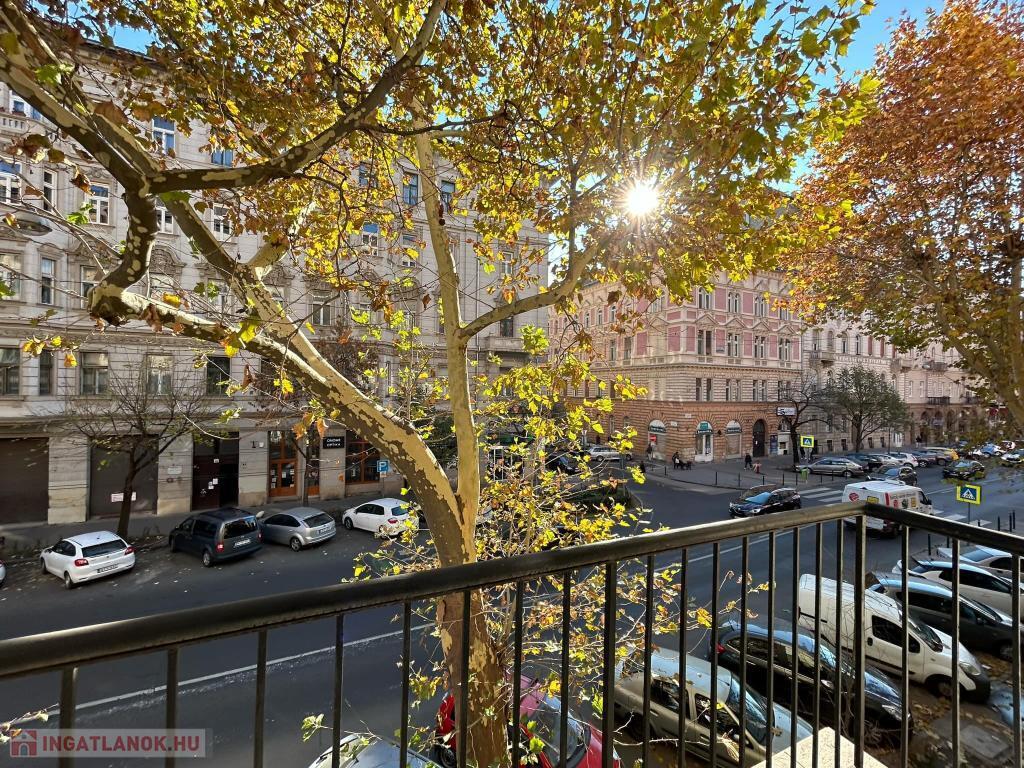 A megújult Városliget a közelben található, a széles utcát hatalmas platán fák díszítik.