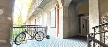 Gazdagon díszített homlokzat, amelyet mostanra felújítottak. Az épület villanyvezetékei is megújultak már, ez a lépcsőházi fotókon látható.