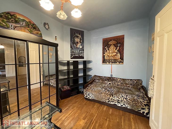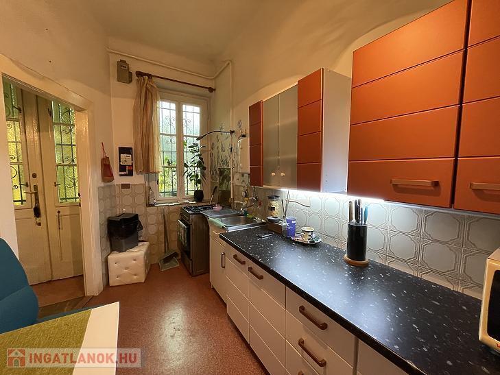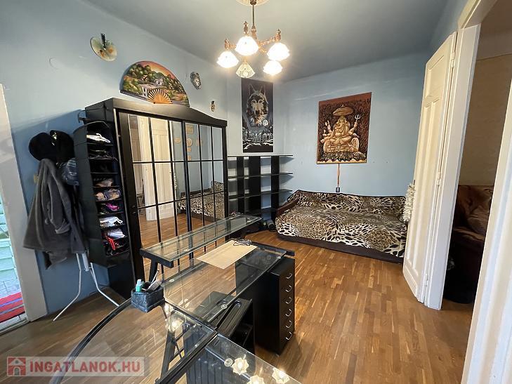 Az ingatlan közepes állapotú, kedvező elosztásának köszönhetően akár két lakássá is alakítható. A négy szobái közül három különnyíló. A szobákban csiszolható, jó állapotú, fa parketta padlózat és fa nyílászárók találhatóak.