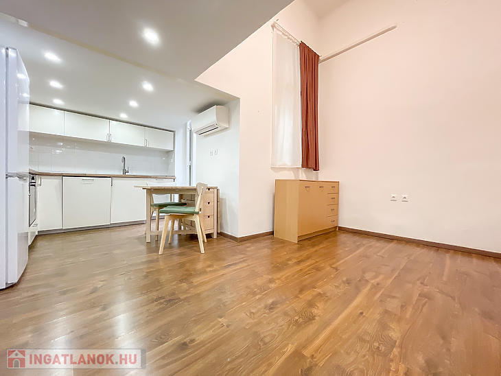 A bútorok a vételár részét képezik, beleértve a gépesített konyhaszekrényt (hűtőszekrény, szag- és páraelszívó, mosogatógép, főzőlap, sütő).