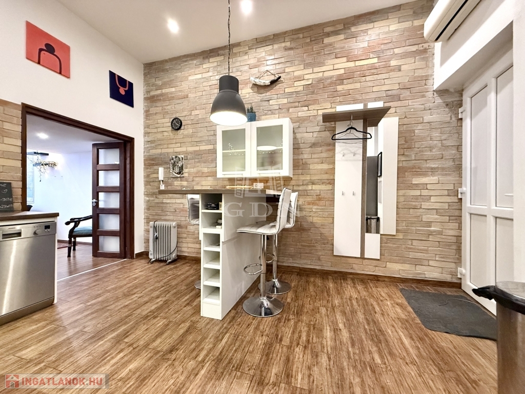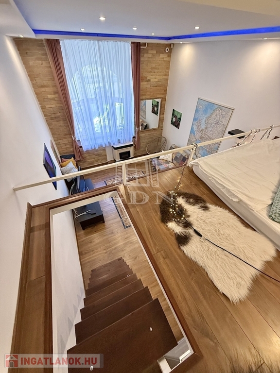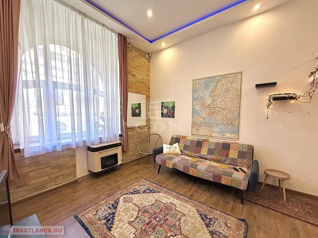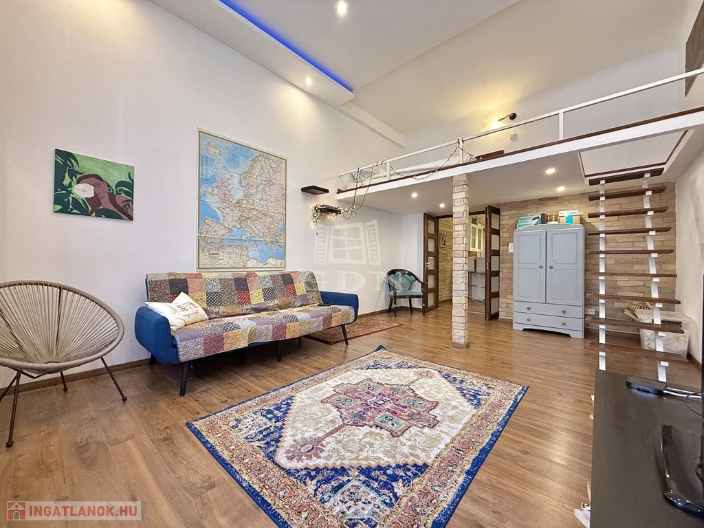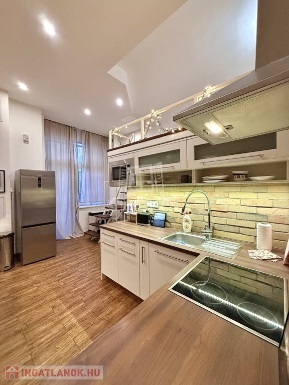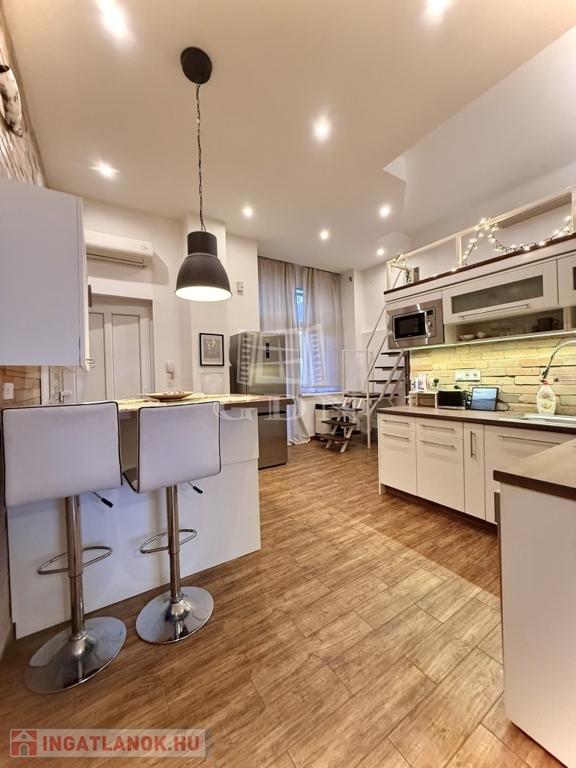 VIII. kerületben, a belváros szívében, kiváló közlekedés és ellátottság mellett, a Salétrom utcában, félemeleti, 45 nm-es, galériás, 2 szobás, utcára néző, napos-világos fekvésű, alacsony fenntartású, gáz-konvektor fűtésű, felújított állapotú, azonnal birtokba vehető, beépített, gépesített konyhával rendelkező lakás, kulturált lakóközösségű házban eladó!